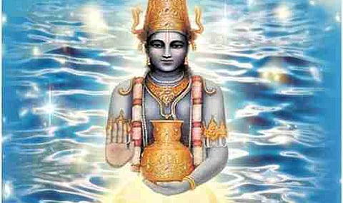 அப்படி பாற்கடலை கடையும்போது முதலில் ஆலகால விஷம் வந்தது. அதை சிவபெருமான் அருந்தி நீலகண்டனானார். அதனையடுத்து காமதேனு, கற்பக விருட்சம், ஐராவதம், மூத்தவளான மூதேவி, மகாலட்சுமி ஆகியோர் தோன்றினர். கடைசியாக அமிர்தத்துடன் மகாவிஷ்ணுவின் அவதாரமான தன்வந்திரி தோன்றினார். இவரின் திருக்கரத்தில் உள்ள கலசத்தில் இருந்து வழங்கிய அமிர்தத்தை தேவர்கள் உண்டதால் சாகா வரம் பெற்றனர்.