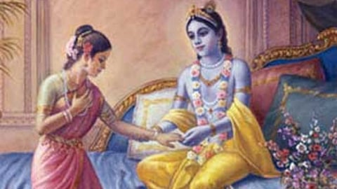 சத்திய பாமாவின் மாளிகையில் உத்தியான வனத்தை அழகு செய்ய பாரிஜாத மரம் நிறுவப்பட்டது. இதனால் ருக்மிணி மனம் வருத்தமடைய, மரம் பாமா வீட்டிலும், அதன் மலர்கள் ருக்மிணி மாளிகையிலும் இருக்கும்படி பகவான் அருளினார்.