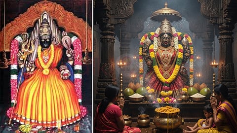 ஒரு சமயம் தஞ்சகன் என்னும் அசுரனை அழிக்க தஞ்சாவூரில் தோன்றிய சிவபெருமான் எட்டு திசைகளிலும் எட்டு சக்திகளை உருவாக்கி நடுவிலே வைத்து தஞ்சகனை அழிக்கிறார். சிவபெருமான் உருவாக்கிய எட்டு அம்மனையும் சோழர்கள் எல்லை சாமிகளாக கும்பிட்டு வந்துள்ளனர். பிறகு காடு மண்டி இவர்களுக்கு வழிபாடு இல்லாமல் போகும்போது, நாயக்கர்களை தோற்கடித்து மராட்டியர்கள் வருகிறார்கள். மராட்டியர்கள் வந்த பிறகே இங்கு கோயிலானது கட்டப்படுகிறது.