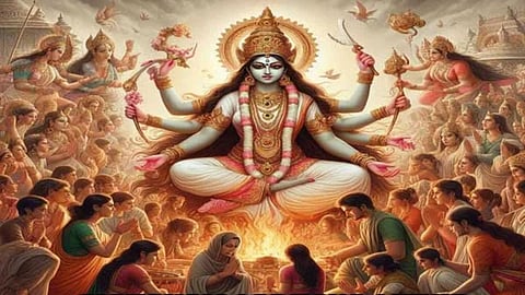 12. தூமாவதி தேவி: வாழ்க்கையில் இருண்ட அம்சங்களை பிரதிபலிக்கும் இவள், புராணங்களில் ஒரே விதவை தெய்வமாக அறியப்படுகிறாள்.