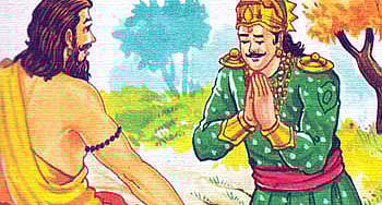 'எங்கோ போய் தெரியாத வேலையைச் செய்வதை விட, என்னிடமே வேலை செய். உனக்குத் தெரிந்தது நாட்டை ஆட்சி செய்வது. அதையே செய். எனது பிரதிநிதியாக மட்டும் நீ நாட்டை ஆண்டு வா. நான் பிறகு வந்து கணக்கு, வழக்குகளை பார்க்கிறேன்' என்றார் துறவி.