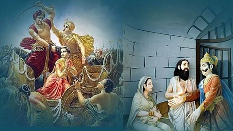 அதைக் கண்ட தேவர்கள், அவர்களின் ஆசை நிறைவேறக் கூடாது என்று எண்ணி, அவர்களின் தவத்தைக் கலைத்து பாதாள உலகிற்குள் அழுத்தி விட்டார்கள்.