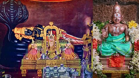 அவரை ஆசுவாசப்படுத்தி அமரச் செய்த பட்டர், அவர் கால்களில் சாஷ்டாங்கமாக விழுந்து நமஸ்காரம் செய்தார். தனது சிஷ்யர்களையும் நமஸ்காரம் செய்யச் சொன்னார்.