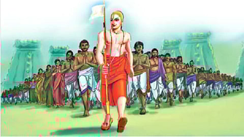 அதைக் கேட்ட ராமானுஜர், "அப்பா… இது தவறான சிந்தனை. இந்த மண் குவியலில் அந்தப் பெருமாளே எழுந்தருளி இருப்பதாக அந்தப் பிள்ளைகள் பக்திபூர்வமாக நம்புகின்றனர். அந்த நம்பிக்கைதான் பக்திக்கே அடித்தளம். இது வெறும் மண் குவியல்தானேன்னு நாம நினைச்சா, அங்கே கோயில்ல இருக்கிறதும் வெறும் சிலைதானே. அதுல மட்டும் எப்படி பெருமாள் எழுந்தருளுவார்? இது சின்னப் பசங்க விளையாட்டுன்னா, அது பெரியவங்க நாம நடத்தும் விளையாட்டு. அவ்வளவுதானே? பக்தி மனசுக்குள்ளே இருந்தா நாம இங்கேயும் அரங்கனை தரிசிக்கலாம். அங்கேயும் தரிசிக்கலாம்" என்றார்.