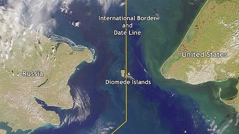 அமெரிக்காவின் அலாஸ்கா மாநிலத்தையும், ரஷ்யாவின் சுகோட்கா (Chukotka) மாநிலத்தையும் பிரிக்கும் பெரிங் ஜலசந்தியில் டியோமெட் தீவுகள் என்று அழைக்கப்படும் இரு பாறைத் தீவுகள் அமைந்துள்ளன. ரஷ்யா மற்றும் அமெரிக்காவின் எல்லையாகவும் இவை உள்ளன.