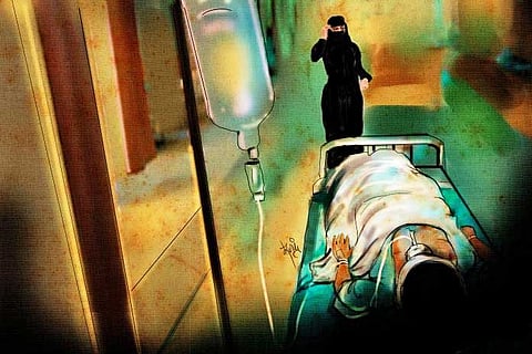 நீண்ட கருப்பு 'அபயா' அங்கிக்குள் டாக்டர் வசந்தி தன்னை திணித்துக்கொண்டாள். சவுதியின் அப்போதைய சட்ட திட்டங்கள் அப்படி ! வசந்தி கார் ஓட்டவும் முடியாது. பெண்கள் ஓட்ட அனுமதி இல்லை. ஓர் ஆண் டிரைவர் அவளை அழைத்துச் செல்ல உடனே வருவார் என்று அவளுக்குத் தெரியும். செல்லும் நேரத்தைக் குறைக்க அபார்ட்மெண்டிலிருந்து வெளி வந்து வசந்தி காத்திருந்தாள். அந்த நள்ளிரவிலும் கோடையை ஒத்த தட்பவெப்ப நிலை!