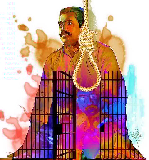 சிறைக் காவலர்களுக்கு ஒன்றும் புரியவில்லை. தான் சாகப் போகிறோம்னு தெரிஞ்சும் இப்படி சந்தோஷமாக இருக்கிறானே.