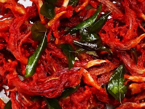 செய்முறை: வறுத்து பொடிக்க கொடுத்துள்ள பொருட்களை ஒன்றாக நன்கு வறுத்து பொடிக்கவும். வெங்காயம், தக்காளி, இஞ்சி பூண்டு பொடியாக நறுக்கவும். பச்சை மிளகாயை கீறவும்.