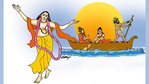 "இதில் ஒரு பாடலுக்கு அர்த்தம் சொல்லுங்கள்" என்று நிமாயி கேட்க, சாஸ்திரிக்கு 'குப்'பென்று வியர்த்தது. அவர் தேவியின் அருளால் பாடுவாரே தவிர, பொருள் அறியாதவர். நிமாயி, "நீரில் தாமரை பூக்கும். தாமரையில் நீர் இருக்குமா?" என்கிறது பாடல். விஷ்ணுவின் பாதத் தாமரைகளில் கங்கையெனும் நீர் பிரவகிக்கிறது என்கிறது அடுத்த பாடல்" என்று விளக்க, கூடியிருந்த புலவர்கள் ஆரவாரம் செய்தனர்.