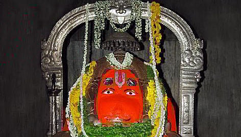 ‘இந்த அடர்ந்த காட்டில் யார் ராம நாமத்தை உச்சரிப்பது’ என்று யோசித்த மன்னர், சற்றுத் தொலைவில் அமர்ந்த நிலையில் இருக்கும் ஒரு ஹனுமன் கற்சிலை விக்ரஹத்திலிருந்து ஸ்ரீ ராம நாமம் ஒலிப்பதைக் கண்டு வியந்தார். அதைத் தொடர்ந்து அந்த ஹனுமன் சிலையை வணங்கி வழிபட்டு தனது ராஜ்ஜியத்துக்குத் திரும்பினார்.