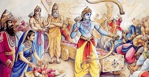 காலச் சக்கரம் சுழன்றது… குழந்தை பாக்கியம் இல்லாததால் சீதையை பூமியின் மடியில் கண்டெடுத்து தனது மகளாக ஜனகர் வளர்த்து வந்தார். சீதை சிறுமியாக இருந்தபோது ஒரு நாள் தனது தோழிகளுடன் பூப்பந்து விளையாடிக் கொண்டிருந்தாள். அப்போது அந்தப் பந்து உருண்டு ஓடி சிவ தனுசுவின் கீழ் மறைந்து விட்டது. பந்தைத் தேடி வந்த சீதை, தனது இடது கையால் சிவ தனுசுவைச் சாதாணமாக தூக்கிப் பிடித்துக் கொண்டு வலது கையால் பந்தை எடுத்துக் கொண்டு ஓடி விட்டாள்.