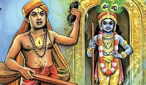 அதையடுத்து, வியாச தீர்த்தர் என்னும் மகானிடம் இவர் தீட்சை பெற்றுக்கொள்கிறார். அதைத் தொடர்ந்து ஸ்ரீநிவாசன் நாயக்கராக இருந்த இவர், புரந்தரதாஸர் என்னும் நாமத்தைப் பெறுகிறார். அதன் பிறகு, கர்நாடகத்தின் விஜயநகர சாம்ராஜ்ஜியத்தில் ஆரம்பித்து, அனைத்து திசைகளிலும் ஸ்ரீகிருஷ்ணனின் அவதாரமான விட்டலனின் பெருமையை மக்களிடம் தனது பாடல்களின் மூலம் எடுத்துச் சொல்லி தனது வாழ்நாளை கழித்துக்கொண்டிருந்தார். ஸ்ரீகிருஷ்ணன் குறித்து இவர் பாடிய பாடல்கள் அனைத்திலும், ‘புரந்தர விட்டல்’ என்னும் இவரது அடையாளம் இருக்கும். இப்படி இவர் சுமார் நான்கு லட்சம் பாடல்களுக்கும் மேல் இயற்றிப் பாடி இருக்கிறார்.