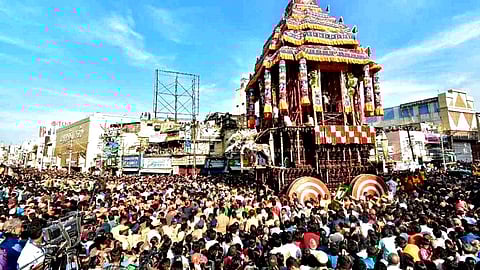 மதுரை சித்திரைத் திருவிழா திருத் தேரோட்டம் நிகழ்வு கோலாகலமாக நடைபெற்று வருகிறது. மாசி வீதிகளில் லட்சக்கணக்கான பக்தர்கள் திரண்டு தரிசனம் செய்தனர்.