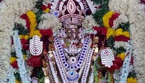 இக்கோயில் மூலவர் மாரியம்மன் நான்கு திருக்கரங்களோடு, கிழக்கு நோக்கிக் காட்சி தருகிறார். வருடத்துக்கு ஒருமுறை இந்த அம்மனுக்கு தைலக்காப்பு சாத்தப்படுகிறது. பெரிய அம்மனுக்கு தைலக்காப்பும், உத்ஸவ அம்மனுக்கு தினமும் அபிஷேகமும், ஆராதனைகளும் செய்யப்பட்டு வருகிறது. அருகில் தனிச் சன்னிதி கொண்டிருக்கும் எல்லை அம்மனும், மாரியம்மனை போலவே கைகளில் ஆயுதம் ஏந்தி, ஐந்து தலை நாகம் குடை பிடிக்க கம்பீரத்துடன் காட்சியளிக்கிறார்.