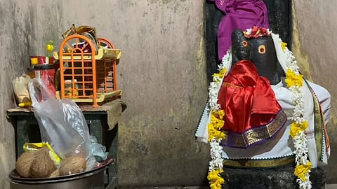 இதை பிரதிபலிக்கும் வகையில் இந்தத் தலத்தின் கருவறையின் நுழைவு வாயிலின் வலது பக்கத்தில் சிவனை அம்பாள் தழுவிய கோலத்தில் ஒரு சன்னிதி அமைந்துள்ளது. அம்பாள் ஒற்றைக் காலை தரையில் ஊன்றியபடி மற்றொரு காலை மடக்கி வைத்து தனது இரு கைகளாலும் சிவலிங்கத்தை தழுவியபடி நிற்பதை இங்கு பார்க்கலாம்.