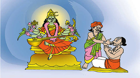 பீகாரிலே கௌரிபுரம் எனும் க்ஷேத்ரத்தில் கோயில் கொண்டிருக்கிறாள் சியாமளா தேவி. சோமேசர் என்கிற அந்தணருக்கு நெடுநாள் குழந்தை யில்லாமல் இருந்து, அம்பாளின் அருளால் ஒரு பிள்ளை பிறந்தான். அவனுக்குச் சியாமளன் என்று பெயர் சூட்டினார் சோமேசர். சியாமளருக்குப் பதினெட்டு வயதானபோது, பெற்றோர் தீர்த்த யாத்திரை புறப்பட்டனர். சியாமளர் உள்ளூர் அம்பாளை விட்டு வர மறுத்துவிட்டார். பகலில் வீட்டு வேலையும் வேதாந்த சர்ச்சையும் இருந்ததால் இரவில் தேவியை உபாசனை செய்தார் சியாமளர்.