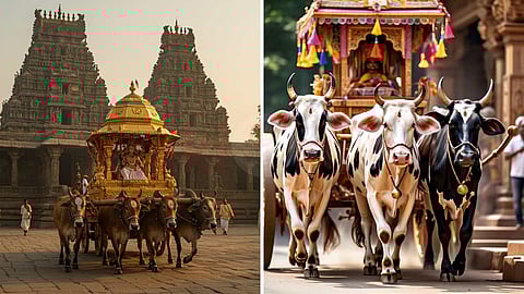 3. ஒசூர் அருகே கர்நாடகா எல்லையில் உள்ளது 'உஸ்கர் கிராமம்'. இங்கு ஆயிரம் ஆண்டுகள் பழமை வாய்ந்த மத்தூரம்மன் கோயில் உள்ளது. இங்கு நடக்கும் பங்குனி தேர்த்திருவிழா விஷேசமானது. இவ்விழாவில் அலங்கரிக்கப்பட்ட 12 தேர்களை பக்தர்கள் இழுப்பது இல்லை. அந்த தேர்களை மாடுகள் இழுத்து ஊர்வலமாக வருவதை பக்தர்கள் பரவசத்துடன் பார்ப்பார்கள்.