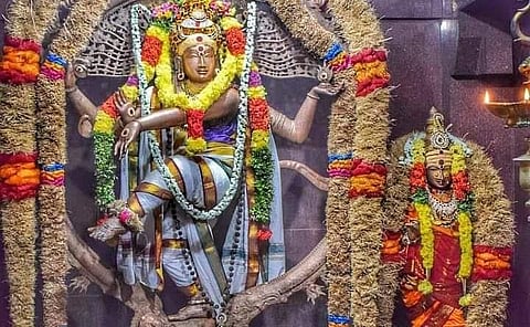 பஞ்ச பூதங்களின் இயக்கத்துக்கும் ஆதாரமாக இருக்கும் சிவபெருமானை நிந்தித்து, ஒருமுறை தாருகாவனத்தில், முனிவர்கள் ஒன்று கூடி, முக்கண்ணனுக்கு எதிராக வேள்வி ஒன்றை நிகழ்த்தினார்கள். அதாவது, அவர்களின் கோட்பாட்டின்படி, கர்மத்தை மட்டும் செய்தால் போதுமானது. கடவுள் என்பவர் கிடையாது என்பதுதான். அவர்களுக்குப் பாடம் புகட்ட வேண்டி, கயிலைநாதன் பிட்சாடனர் ரூபமெடுத்து, பிட்சைக் கேட்டு முனிவர்களின் இல்லங்களுக்குச் சென்றார். பிட்சாடனரைக் கண்ட முனி பத்தினிகள் அனைவரும், அவரின் பின்னால் போகத் தொடங்கினர்.