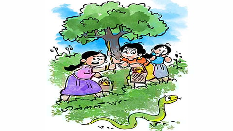 ”பயமெதற்கு ஐயா, நம் மாத்தூரில் இதுவரை நாம் பாம்புகளைப் பார்த்ததே இல்லையா? நாங்கள் கவனத்துடன் இருப்போம். கழிகள் இருந்தால் கொடுங்கள்.” - திலகா.