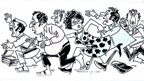 பிற்பகல் இரண்டரை மணி இருக்கும். உண்ட மயக்கத்தோடு உட்கார்ந்திருந்தேன். எதிரே பம்பாயின் பல மாடி கட்டடங்களாய் அடுக்கி வைக்கப்பட்டிருந்த கோப்புகளைப் பார்க்க மலைப்பாய் இருந்தது. அத்தனையையும் ஒரு நெல்லிக்காய் சைஸ் பாம் போட்டுத் தகர்த்துவிட்டால் சுகமாயிருக்கும். வாயைப் பிளந்துகொண்டு வந்த 'ஹா...ஹக்' என்ற கடூரமான கொட்டாவி சப்தத்திற்கு, எசப்பாட்டு கணக்காகக் கைவிரலால் சொடுக்கு சப்தம் கொடுத்தேன். எதிரே ஒரு 'களுக்' சப்தம் கேட்டது. டைப்பிஸ்ட் ராதா சிரிப்பை அடக்க முடியாமல் தவித்துக்கொண்டிருந்தாள்.