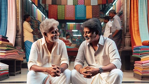 நகரின் முக்கியப் பகுதியில் அமைந்துள்ள அந்தக் கடை வாசலில் ஏகப்பட்ட கூட்டம்! எப்பொழுதுமே காணப்படும் கூட்டம், பண்டிகை காலம் நெருங்குவதால் மேலும் அலை மோதிற்று! உயரத்தில் அமைந்துள்ள அந்தக் கடையின் முக்கிய வாசலுக்கு இரு புறமும் உள்ள படிக்கட்டுகள், பெரியவர்களுடனும், குழந்தை வைத்திருப்பவர்களுடனும் நிறைந்திருக்க, புதிதாக வருபவர்கள், கீழே நின்றபடியே, தியேட்டர்களில் நுழைந்தவுடன் மேலுள்ள சீட்களை நோட்டம் விடுவது போல, உட்காரக் காலியிடம் தேடி மேல் நோக்கிப் பார்வையைச் செலுத்தினர்!