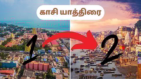 குறிப்பு: காசி யாத்திரை என்பது தமிழ்நாட்டில் ராமேஸ்வரத்தில் ராமலிங்க ஸ்வாமியை தரிசனம் செய்துவிட்டு கடற்கரையிலிருந்து மண்ணெடுத்துப் போய் காசியில் கங்கை நதியில் அம்மண்ணைக் கரைத்துவிட்டு, காசி விஸ்வநாதர் தரிசனம் பெற்று, அங்கிருந்து கங்கை புனித நீர் கொண்டு வந்து ராமேஸ்வரம் ஈசனுக்கு அபிஷேகம் செய்வதில்தான் பூரணத்துவம் பெறும் என்பது ஆண்டாண்டு கால வழக்கம்.