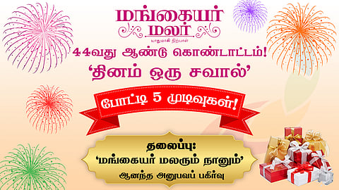 திருவனந்தபுரம் மாற்றலாகிய பின்னும் மங்கையர் மலரை நாங்கள் விடவில்லை. அமெரிக்கா வந்தவுடன் இங்குள்ள நூலகத்தில் நம் இதழைக் கண்டது ஆச்சரியமாகவும் மகிழ்ச்சியாகவும் இருந்தது. ஆனால் பின் கிடைக்கவில்லை. இணையதள வாசகியானேன். திடீரென என் கண் முன் 44 ஆண்டுக்கான போட்டியை கண்டதும் ஏனோ ஆசையாக இருந்தது. அம்மா என் மூலமாக பங்கேற்க சொல்கிறாளோ?