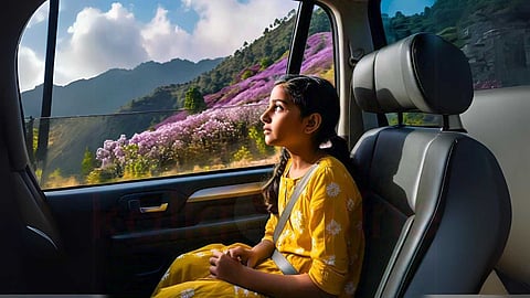 குமுதாவுக்கு அப்படியே காரிலிருந்து இறங்கி ஓடிப்போய், மலையில் மந்தகாசமாய் பூத்துக் கிடக்கும் குறிஞ்சிப் பூக்களைத் தழுவிக் கொள்ள ஆசைதான்! ஆனாலும், என்ன செய்வது?