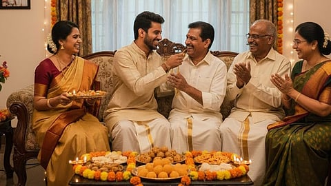 "மாமா, தலை தீபாவளிக்கு, மாமனார் தான் மாப்பிள்ளைக்கு மோதிரம் செயின் எல்லாம் போட வேண்டும் என்று எழுதி இருக்கிறதா? ஏன், மாப்பிள்ளை மாமனாருக்கு போடக்கூடாதா" என்றார் மாப்பிள்ளை.
