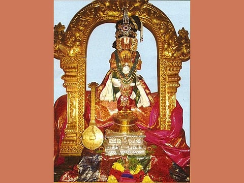 108 திவ்ய தேசங்களில் முதலானதும் முதன்மையானதும் காவேரிக் கரையில் ஊள்ள திருவரங்கம் தான் என்பது நாம் எல்லோரும் அறிந்ததே. திருப்பாணாழ்வார் வாழ்ந்த காலத்தில் இந்த திருவரங்கம் திருத்தலத்திற்கு பாணர் போன்ற தாழ்த்தப்பட்டவர் இனத்தைச் சேர்ந்தவர்கள் வர அனுமதியில்லை. இதனால் சற்றும் மனம் தளராத திருப்பாணாழ்வார், தினமும் காவேரியின் மறுகரையில் நின்று கொண்டு திருவரங்கப் பெருமானை மனதிற்குள்ளேயே நினைத்து இனிமையான பாடல்களை பாண் என்னும் இசைக்கருவியில் இசைத்துப் பாடிப் பாடிப் பரவசம் கொள்வார்.