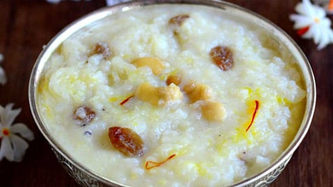 தேவையானப் பொருட்கள்: பச்சரிசி 1 கப், பால் 1 லிட்டர், கல்கண்டு 2 கப், நெய் ½ கப், முந்திரி திராட்சை தலா15, எலத்தூள் 1/2டீஸ்பூன், குங்குமப்பூ 1சிட்டிகை (ஒரு கரண்டி பாலில் ஊற வைக்கவும்.)