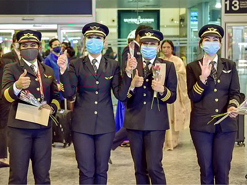 ஆனால் இதைவிட சிலிர்ப்பூட்டும் ஒரு சாதனை இதில் நடைபெற்றது. இதன் விமான ஓட்டிகள் குழுவில் மொத்தம் நாலு பேர். நான்கு பேரும் பெண்கள். இந்தியர்கள்.