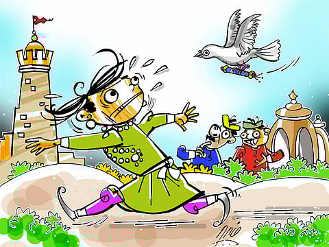 "அதான் புறா ஒலையை பார்த்தவுடனே பயந்து ஓடுறாரே!"