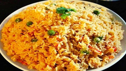 புலாவ் அரிசி (பாசுமதி அரிசி) – 2 தம்ளர், நன்கு பழுத்த தக்காளிப் பழம் – ¼ கிலோ, முற்றின தேங்காய் - 1 மூடி, பெல்லாரி வெங்காயம் - 4 பெரியது, பூண்டு - 3 பெரியது, இஞ்சி - 1 துண்டு, பச்சை மிளகாய் - 10 (எண்ணிக்கை), முந்திரிப் பருப்பு - 15' (எண்ணிக்கை), பட்டை, லவங்கம், பிரிஞ்சி இலை தாளிப்புப் போட சிறிது அளவு, நெய் - 1 தேக்கரண்டி, எண்ணெய் - 2 தேக்கரண்டி. மல்லி தழை, புதினா - பொடியாக நறுக்கியது (அலங்கரிக்க), உப்பு - தேவையான அளவு.