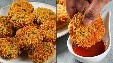 *நாம் எடுத்து வைதிருந்த அந்த உருண்டை அல்லது தட்டயை எடுத்து கலக்கி வைதிருந்த சோளமாவில் இருபக்கமும் முக்கி எடுத்து கொண்டு, பின் அதை தட்டில் உடைத்து வைதிருந்த நூடுல்ஸ்யில் பிரட்டி எடுத்து கொள்ளவும்.