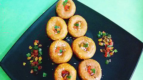 4.மாவை சிறுசிறு உருண் டைகளாக உருட்டி, உள்ளங்கையில் வைத்து அழுத்தி, கட்டை விரலால் நடுவில் சிறிது அழுத்திய பின் எண்ணெயில் பொரித்து எடுக்கவும்.