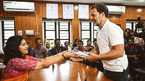 லோக்சபா தேர்தல் நெருங்கி வரும் நிலையில் வேட்பாளர்கள் தொடர்ந்து வேட்புமனு தாக்கல் செய்து வருகின்றனர். அந்தவகையில் இன்று வயநாடு தொகுதியில் காங்கிரஸ் முன்னாள் தலைவர் ராகுல் காந்தி வேட்புமனு தாக்கல் செய்தார்.