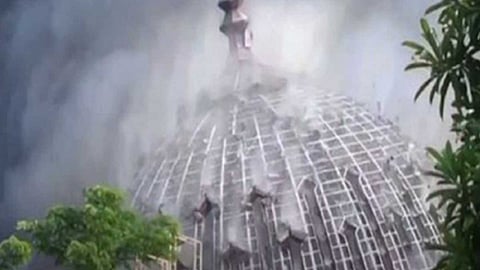 இந்தோனேசியாவில், ஜகார்த்தாவில் உள்ள ஒரு மசூதியில் தீ விபத்து ஏற்பட்டு அந்த மசூதியின் கோபுரங்கள் இடிந்து விழும் காட்சி பெரும் பரபரப்பை ஏற்படுத்தியுள்ளது.