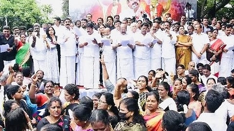மதுரையில் செல்லூர் ராஜூ தலைமையில் ஆர்ப்பாட்டம் நடைபெற்றது. ஈரோடு, வேலூர், சேலம், கோவை, உள்ளிட்ட தமிழகத்தின் அனைத்து மாவட்டங்களில் அதிமுக சார்பில் ஆர்பாட்டம் நடைபெற்றது.