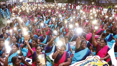போராட்டத்தில் கலந்து கொண்டவர்கள் தங்களது செல்போனில் விளக்குகளை ஒளிரவிட்டதுடன் “இதேபோன்று தங்களது வாழ்விலும் அரசு ஒளியேற்ற வேண்டும்” என்ற கோஷங்களை எழுப்பினர். இந்த போராட்டம் குறித்து மாநில துணைத்தலைவர் சரோஜா கூறும் போது “அங்கன்வாடி பணியாளர்கள் மற்றும் உதவியாளர்கள் கோரிக்கைகளை அரசு நிறைவேற்றாமல் காலம் தாழ்த்தி வருகிறது. பலமுறை பேச்சுவார்த்தை நடத்தியும் இதுவரை நடவடிக்கை இல்லை. எனவே கோரிக்கைகளை உடனே நிறைவேற்ற வலியுறுத்தி செல்போனில் விளக்கு ஏற்றி எங்கள் வாழ்க்கையில் ஒளியேற்ற வேண்டும் என்று தமிழக அரசுக்கு கோரிக்கை வைக்கிறோம். கோரிக்கைகளை நிறைவேறாவிட்டால் தொடர் போராட்டத்தில் ஈடுபடுவோம்” என்று வலியுறுத்தி உள்ளார். அரசு இவர்களின் கோரிக்கைகளை ஏற்குமா? பொறுத்திருந்து பார்ப்போம்.