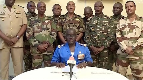 நைஜீரிய அரசுத் தொலைக்காட்சியில் பேசிய கலகத்தின் முக்கிய பங்காளரான கர்னல் அமடௌ அப்டிரமனே, பதவியிலிருந்து நீக்கப்பட்ட அதிபர் பிரான்ஸ் அரசை தங்கள் மீது தாக்குதல் தொடுப்பதற்கு அங்கீகாரம் அளித்துள்ளார் என்றும் அவருடைய வெளியுறவு அமைச்சராக இருந்த ஹசௌமி மசௌதௌவை பிரதமராக நியமித்துள்ளார் என்றும் தெரிவித்தார்.