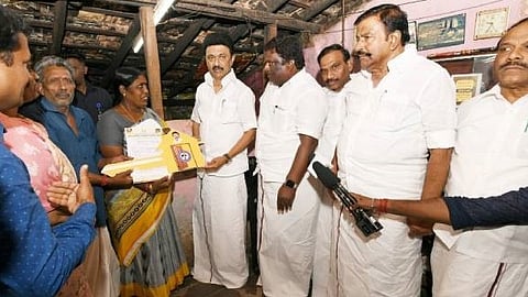 இந்திய ஹாக்கி அணிக்கு தேர்வாகியுள்ள அரியலூர் மாவட்டத்தைச் சேர்ந்த ஹாக்கி வீரர் கார்த்திக் குடும்பத்துக்கு வீடு ஒதுக்கீடு செய்து, அதற்கான ஆணையை முதல்வர் மு.க.ஸ்டாலின் நேரில் சென்று அளித்தார்.