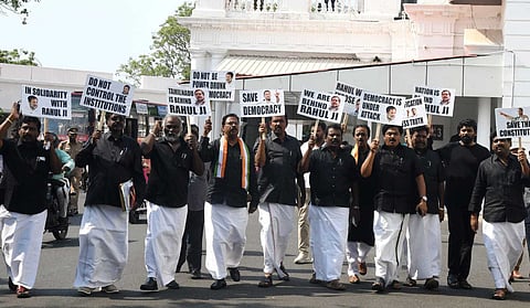 இதையடுத்து, நாட்டின் பல மாநிலங்களிலும் காங்கிரஸ் கட்சியினர் போராட்டம் நடத்தி வருகின்றனர். மேலும், பல அரசியல் கட்சி தலைவர்களும் இதற்குத் தங்களது கண்டனத்தைத் தெரிவித்து இருந்தனர். இதன் தொடர்ச்சியாக இன்று தமிழக சட்டமன்றத்துக்கு வருகை தந்த காங்கிரஸ் சட்டமன்ற உறுப்பினர்கள் அனைவரும் கருப்பு சட்டை அணிந்து வந்து, ராகுல் காந்தியின் தகுதி நீக்கத்துக்கு தங்களது எதிர்ப்பைத் தெரிவித்தனர். மேலும், ‘ராகுல் காந்திக்கு ஆதரவாக இருப்போம்’ என்ற வாசகத்துடன் கூடிய பதாகைகளைத் தாங்கியும், பாஜகவுக்கு எதிரான கோஷங்களை எழுப்பியும் அவர்கள் தங்களது எதிர்ப்பைத் தெரிவித்தனர்.