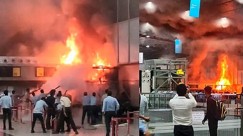 கொல்கத்தா விமான நிலையத்தில் நேற்றிரவு திடீரென தீ விபத்து ஏற்பட்டது. இதனால் அப்பகுதியில் பயணிகளிடையே சற்று பரபரப்பு நிலவியது.