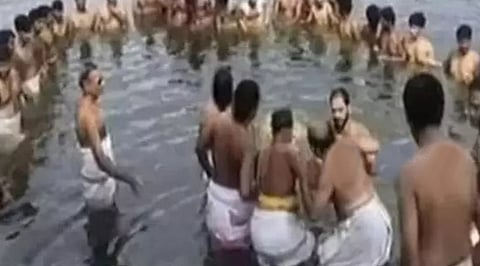 சென்னை, நங்கநல்லூர் எம்எம்டிசி காலனியில் உள்ளது அருள்மிகு தர்மலிங்கேஸ்வரர் திருக்கோயில். இந்த கோயிலில் தீர்த்தவாரி உத்ஸவம் நடைபெற்றது. அதற்காக சுவாமியை பல்லக்கில் வைத்து சுமார் இருபதுக்கும் மேற்பட்டோர்கள் சுமந்து வந்தனர். கோயிலில் நடைபெற்ற தீர்த்தவாரி உத்ஸவத்தின்போது சுவாமியை குளத்தில் இறக்கி நீராட்டுகையில், அந்தக் கோயிலைச் சேர்ந்த இருபத்து ஐந்து அர்ச்சகர்களுக்கும் மேற்பட்டோர் குளத்தில் இறங்கி இருக்கிறார்கள்.