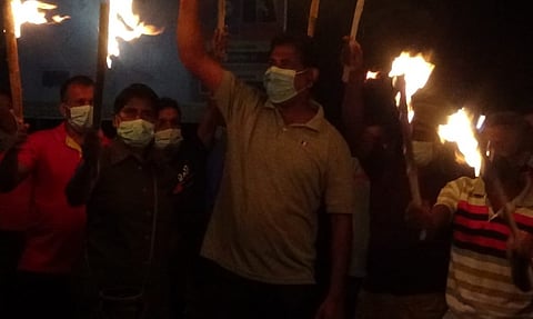 ராகுல் காந்தி தகுதி நீக்கம் செய்யப்பட்டதை கண்டித்து வயநாடு கல்பேட்டா பகுதியில் காங்கிரஸ் கட்சியின் இளைஞர் அணியினர் தீப்பந்தம் ஏந்தி போராட்டம் நடத்தினர்.