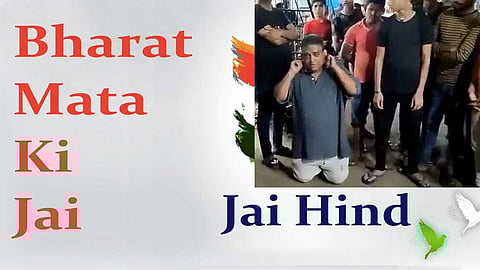 அந்த குழு அவரை 'பாரத் மாதா கி ஜெய்' கோஷத்தை எழுப்பச் சொல்லி வற்புறுத்துவதையும் வீடியோ காட்டுகிறது.