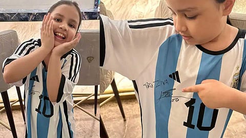 இதையடுத்து நட்சத்திர கால்பந்து வீரரான லியோனல் மெஸ்ஸி, இந்திய கிரிக்கெட்டின் முன்னாள் கேப்டன் தோனியின் ஏழு வயது மகள் ஸிவாவுக்கு தனது கையெப்பம் இட்ட அர்ஜெண்டினா அணி ஜெர்சியை பரிசளித்துள்ளார்.