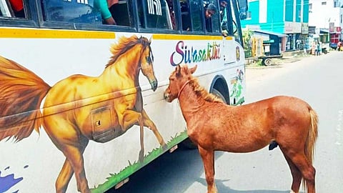 கோவை அருகே தாயை பிரிந்த ஒரு குட்டி குதிரை, அவ்வழியாக சென்ற பேருந்தில் இருந்த குதிரை படத்தைப் பார்த்து தன் தாய் என்று நினைத்து, அந்த பஸ்ஸை பின்தொடர்ந்து ஓடியது காண்போரை கலங்க வைத்தது.