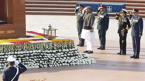 இன்று தேசிய வெற்றி தினம் கொண்டாடுவதை முன்னிட்டு டெல்லியில் போர் வீரர்கள் நினைவிடத்தில் மத்திய பாதுகாப்பு அமைச்சர் ராஜ்நாத் சிங் மலர்வளையம் வைத்து மரியாதை செலுத்தினார்.